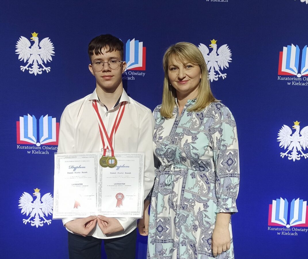 Paweł Hunek z klasy 8a – Laureat IX Wojewódzkiego Konkursu z Matematyki oraz Laureat VI Wojewódzkiego Konkursu z Informatyki
