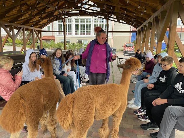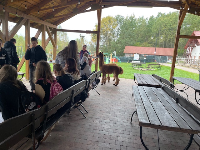 W czwartek 9 października klasy 5a, 5c, 6a i 6b wraz z wychowawcami wybrały się na wycieczkę do leśnego obozu Haber Camp na terenie naszego województwa. Spośród proponowanych przez organizatorów atrakcji wybrane zostało spotkanie z alpakami oraz zwiedzanie największego w Polsce rezerwatu żółwi. Najpierw uczniowie pojechali do kompleksu „Oceanika” koło Zagnańska, gdzie mogli się spotkać z bardzo przyjaznymi zwierzątkami, jakimi są alpaki oraz obejrzeć żółwie. Był też czas na krótką zabawę na świeżym powietrzu. Następnie autokarem przejechaliśmy do leśnego obozu Haber Camp. Po krótkim spacerze po pięknym lesie na miejscu czekało na wszystkich rozpalone ognisko, kiełbaski, chleb i ciepła herbata, a także boiska do gry w piłkę. Uczniowie mogli spędzić czas wolny w pięknym otoczeniu przyrody. Był to miło spędzony czas mimo niezbyt dobrej pogody, ale z dobrym humorem.