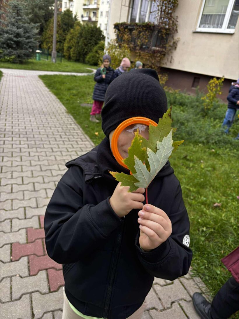 Uczniowie klasy I A wybrali się na zajęcia terenowe, podczas których prowadzili obserwacje przyrodnicze z wykorzystaniem lup. Dzieci z dużym zainteresowaniem przyglądały się roślinom, owadom i innym elementom otaczającej przyrody. Dzięki lupom mogły dostrzec wiele szczegółów, których na co dzień nie widać gołym okiem. Podczas wspólnej wyprawy uczniowie dokonali także ciekawego odkrycia – znaleźli wyjątkowy kamień w podróży, który wzbudził ich ogromną ciekawość. Stał się on pretekstem do rozmowy o tym, jak różnorodna i fascynująca potrafi być natura.