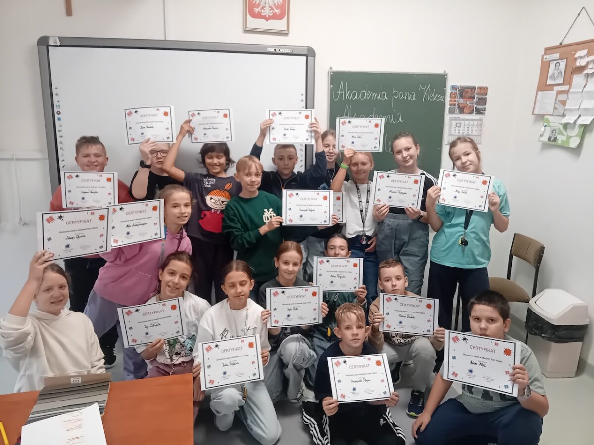 Na koniec czwartoklasiści otrzymali pamiątkowe certyfikaty ukończenia nauki w Akademii Pana Kleksa.