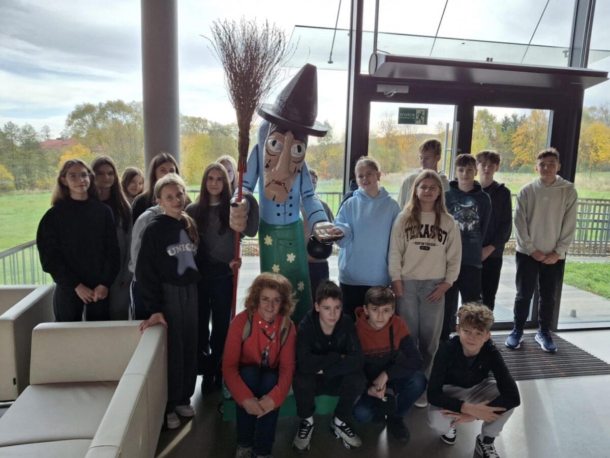 w Góry Świętokrzyskie. Na początek uczniowie zwiedzili Park Legend. Dowiedzieli się, skąd się wzięło madejowe łoże, czym zawinił zbój Kak oraz jak wyglądały sabaty czarownic na Łysej Górze. Legendy świętokrzyskie to świat pełen magii. Muzeum legend zrobiło na wszystkich duże wrażenie. Największą atrakcją był lot na miotle