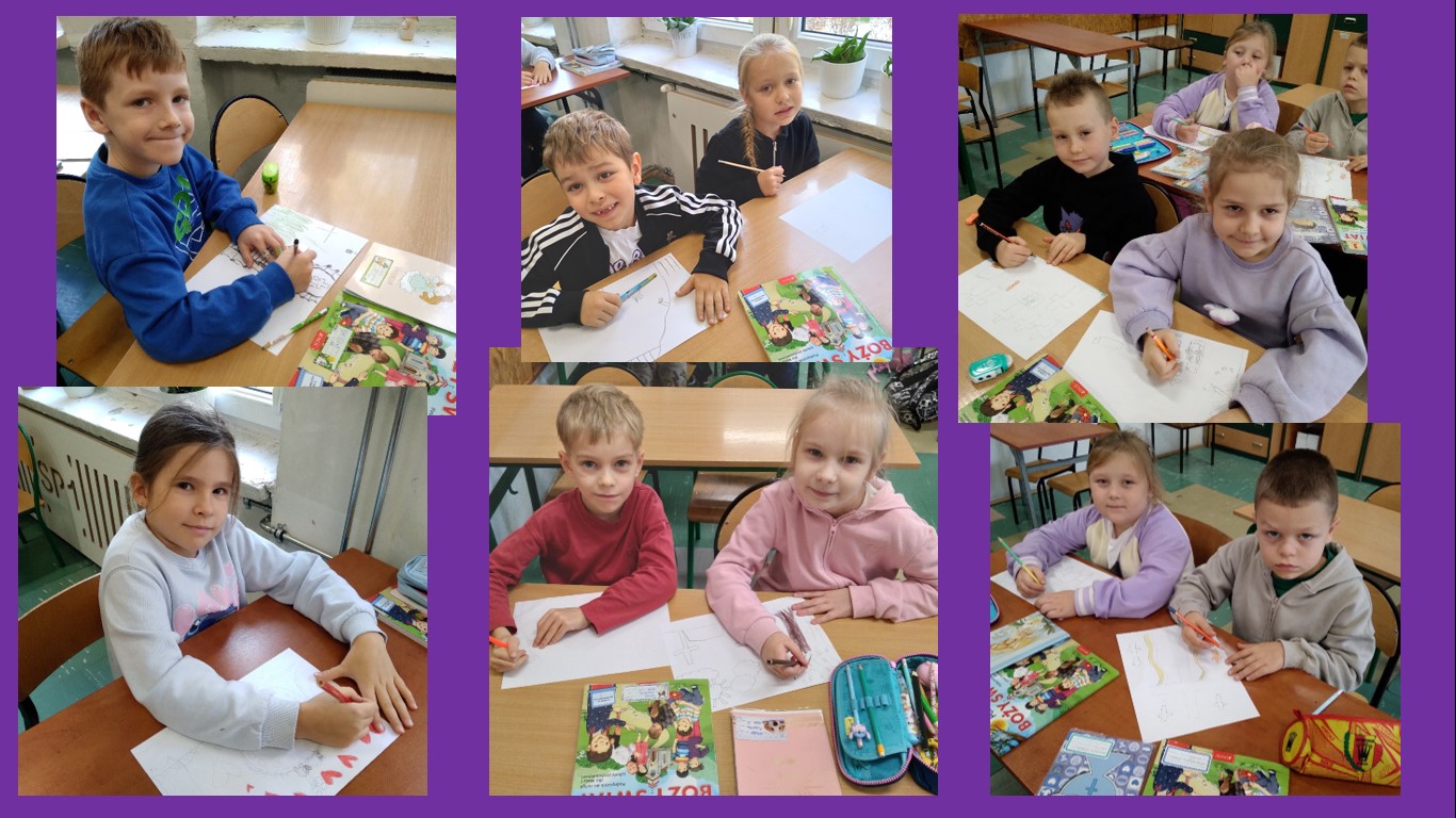 W klasie, podczas pracy w grupach, wykonywali prace plastyczne, na których widać jesienne drzewa, proste, brzozowe krzyże, pomniki, mogiły i symboliczne biało-czerwone wstęgi.