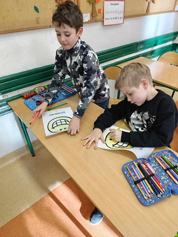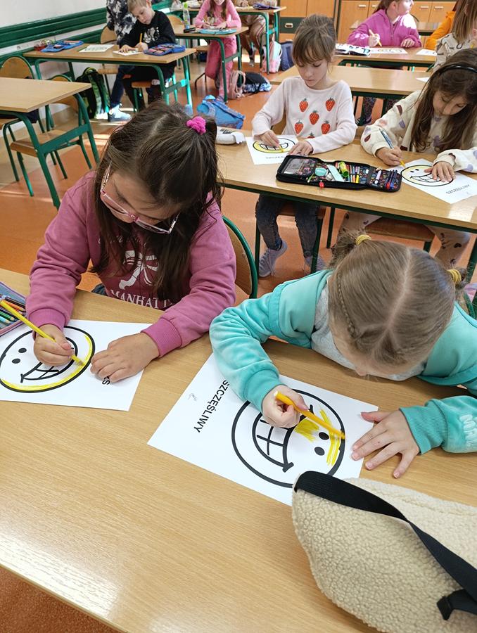 Na zakończenie zajęć pierwszaki malowały swoje emocje, co pomaga im w wyrażaniu i zrozumieniu własnych uczuć.