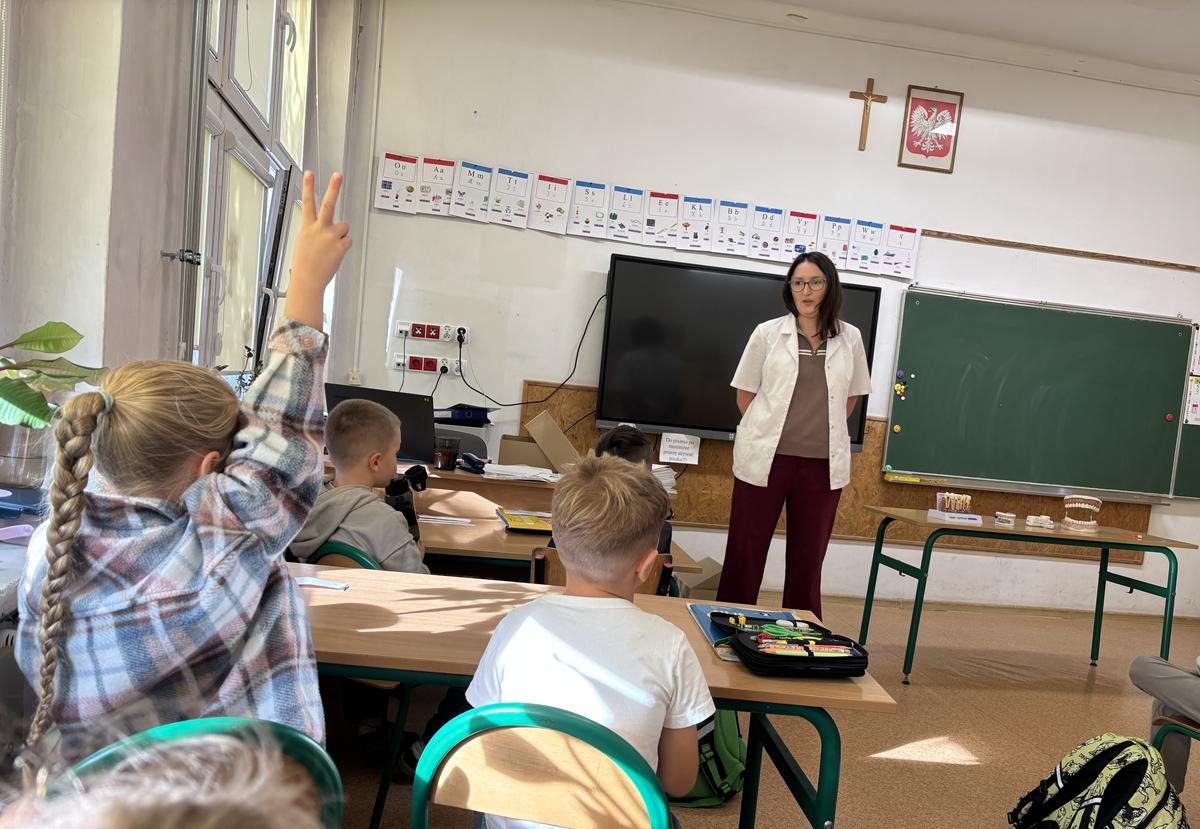 W czwartek 13 listopada, uczniowie klasy 1a mieli okazję uczestniczyć w niezwykle interesującym spotkaniu z lek. dent. Magdaleną Kopacz, która odwiedziła naszą szkołę w ramach zajęć z doradztwa zawodowego. Celem wizyty było przybliżenie najmłodszym, na czym polega praca dentysty oraz dlaczego dbałość o zdrowie jamy ustnej jest tak ważna już od najmłodszych lat.