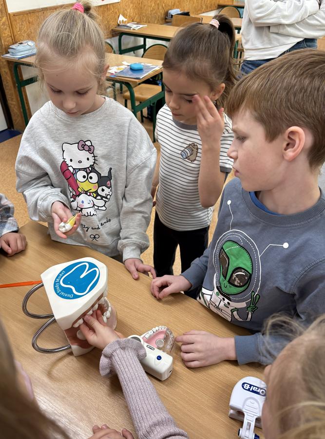 Wizyta była dla pierwszoklasistów nie tylko ciekawą lekcją o zawodzie dentysty, ale także ważną lekcją dbania o zdrowie.