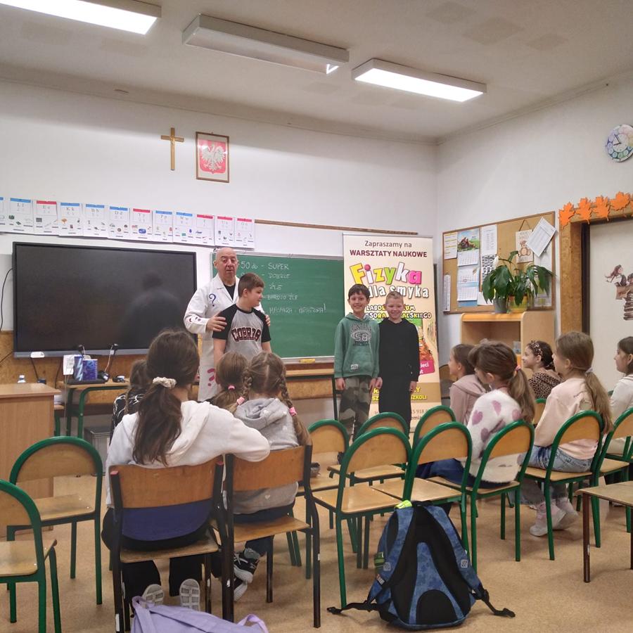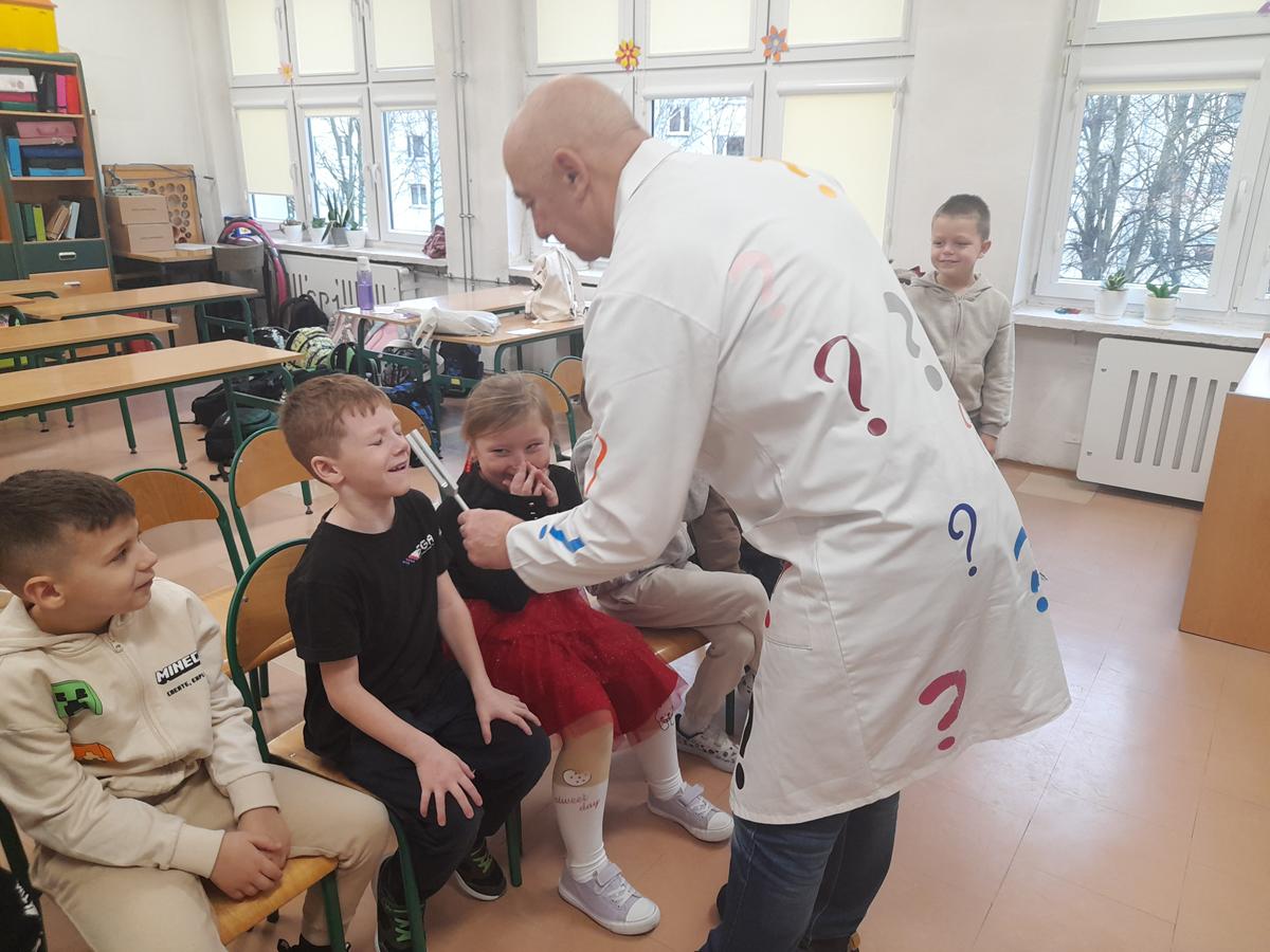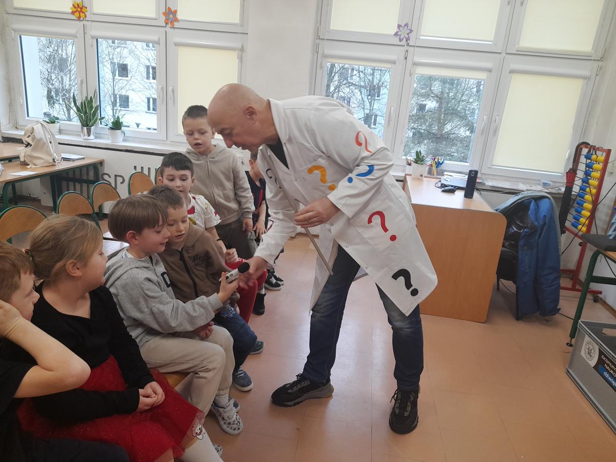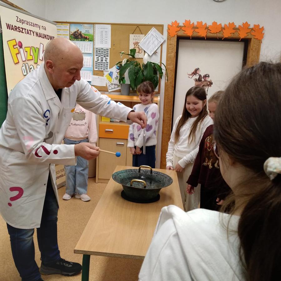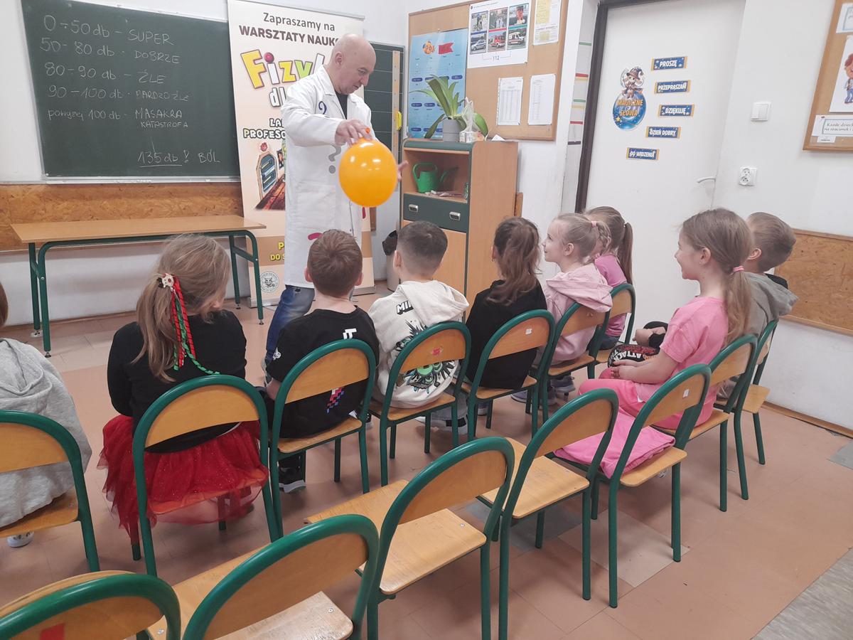 W klasach I–III odbyły się wyjątkowe zajęcia z cyklu „Fizyka dla Smyka”, prowadzone przez Profesora Pytalskiego. Tematem spotkania były nietypowe i nie zawsze przyjemne dźwięki, czyli piski, wrzaski i trzaski, które towarzyszą nam w codziennym życiu.
