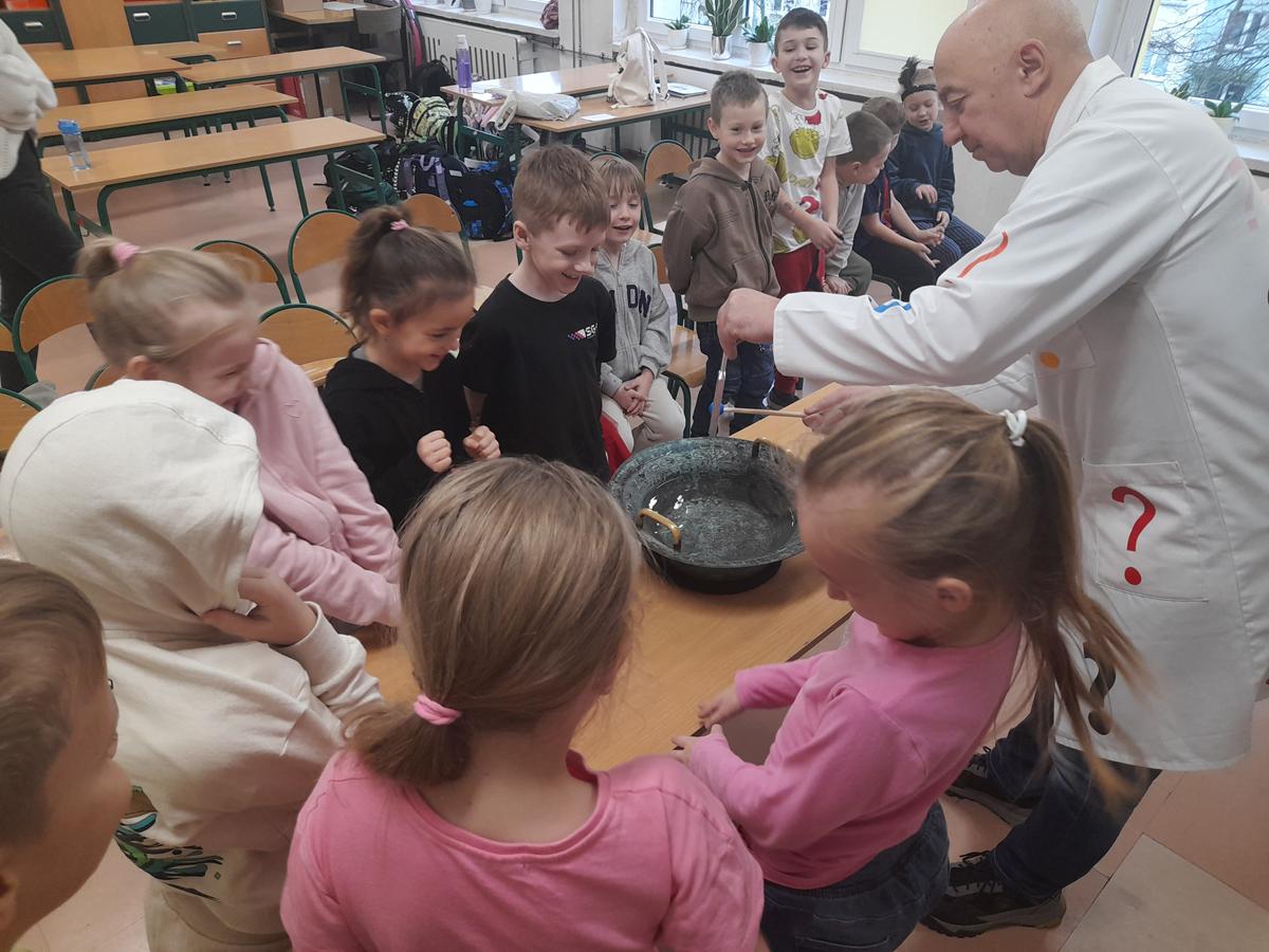 Profesor Pytalski zaprezentował wiele ciekawych eksperymentów, dzięki którym uczniowie mogli usłyszeć, zobaczyć i poczuć dźwięk. Dzieci z dużym zaangażowaniem uczestniczyły w doświadczeniach, chętnie zadawały pytania i same próbowały tworzyć różne odgłosy, aby zrozumieć ich źródło.