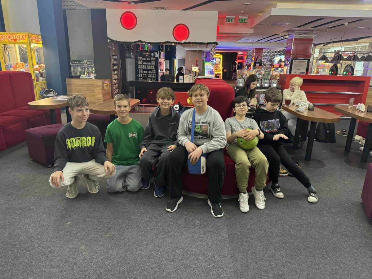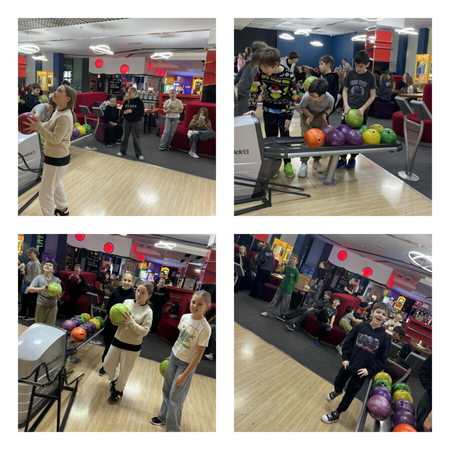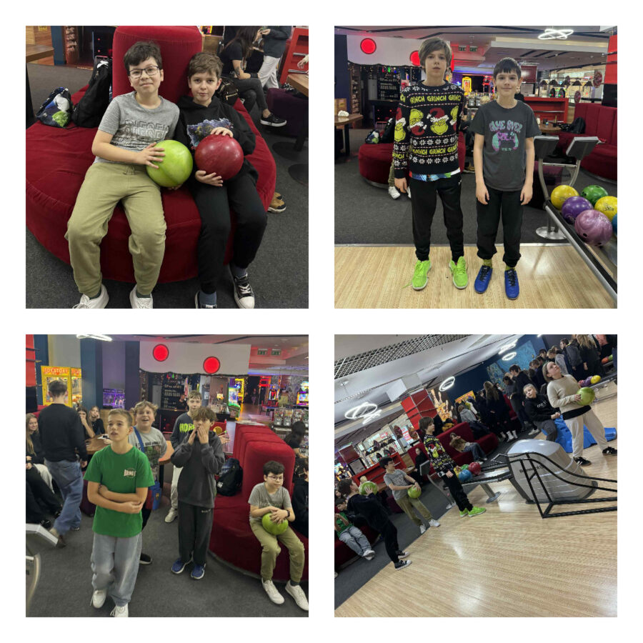 Klasa 5 b wybrała się 9 grudnia na kręgle do MK Bowling, gdzie uczniowie świętowali tegoroczne mikołajki. Czas spędzony na kręgielni okazał się fantastycznym sposobem aktywności ruchowej, zabawy i integracji innej niż dotychczas. Aby po sportowych zmaganiach wzmocnić siły, rodzice zamówili dzieciom pyszną pizzę. Kolejną atrakcją było zjeżdżanie na rurze, która od niedawna znajduje się w Galerii Echo. Humor dopisywał wszystkim przez cały czas, więc to wyjście zaliczamy do bardzo udanych.