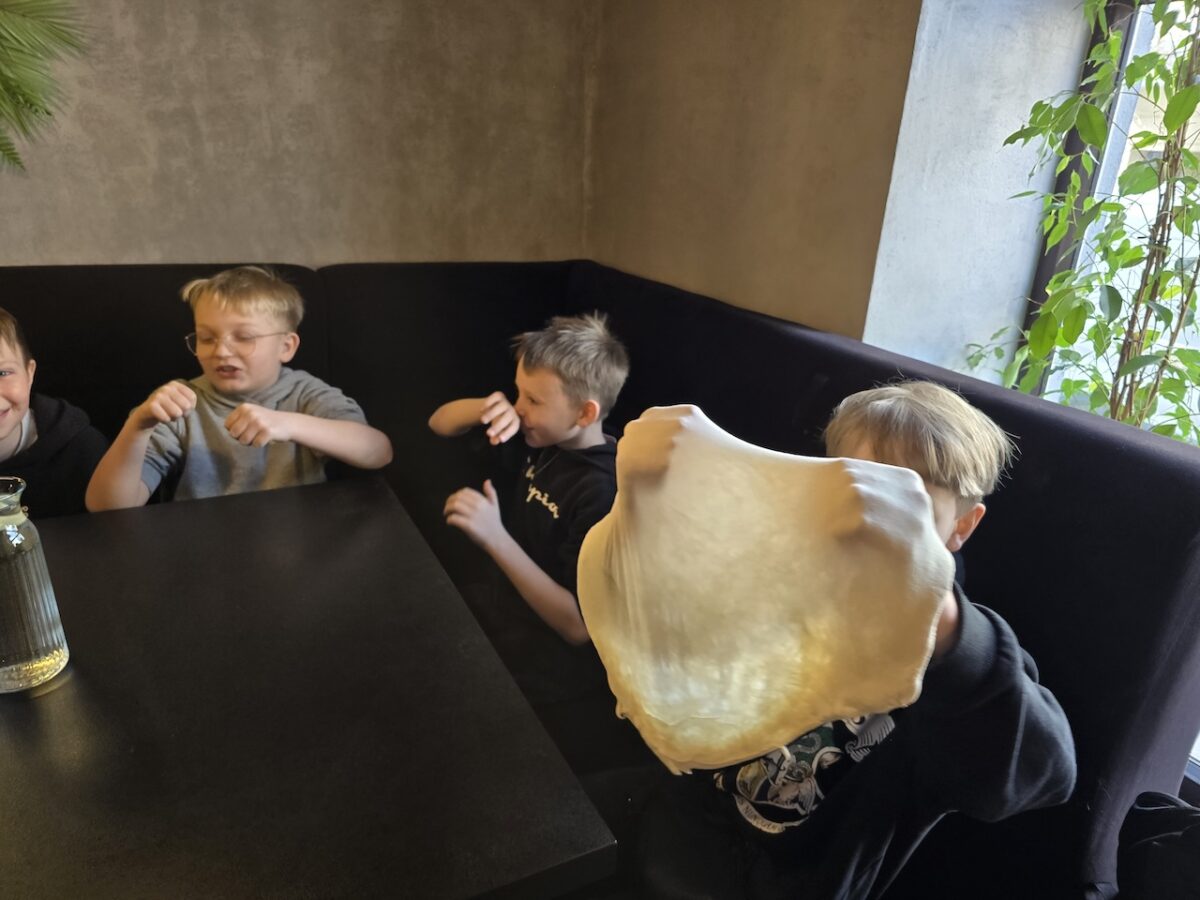Po części teoretycznej młodzi pizzaiolo przystąpili do działania – zagniatali, podrzucali i kręcili ciastem, doskonaląc swoje umiejętności kulinarne i świetnie się przy tym bawiąc.