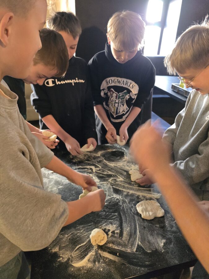 Uczniowie mieli okazję poznać pochodzenie pizzy neapolitańskiej oraz dowiedzieć się, jak na przestrzeni lat kształtowała się jej receptura. Podczas zajęć dzieci poznały także ciekawe elementy włoskiej kultury, takie jak Portafortuna – symbol przynoszący szczęście – oraz Cornetto Rosso, czyli czerwony rożek przypominający papryczkę, który według tradycji pomaga przyciągać szczęście. Dużą atrakcją było również spotkanie z postacią Signor Antonio Rioba – czwartoklasiści mogli dotknąć jego nosa, co – zgodnie z włoskimi wierzeniami – przynosi szczęście.