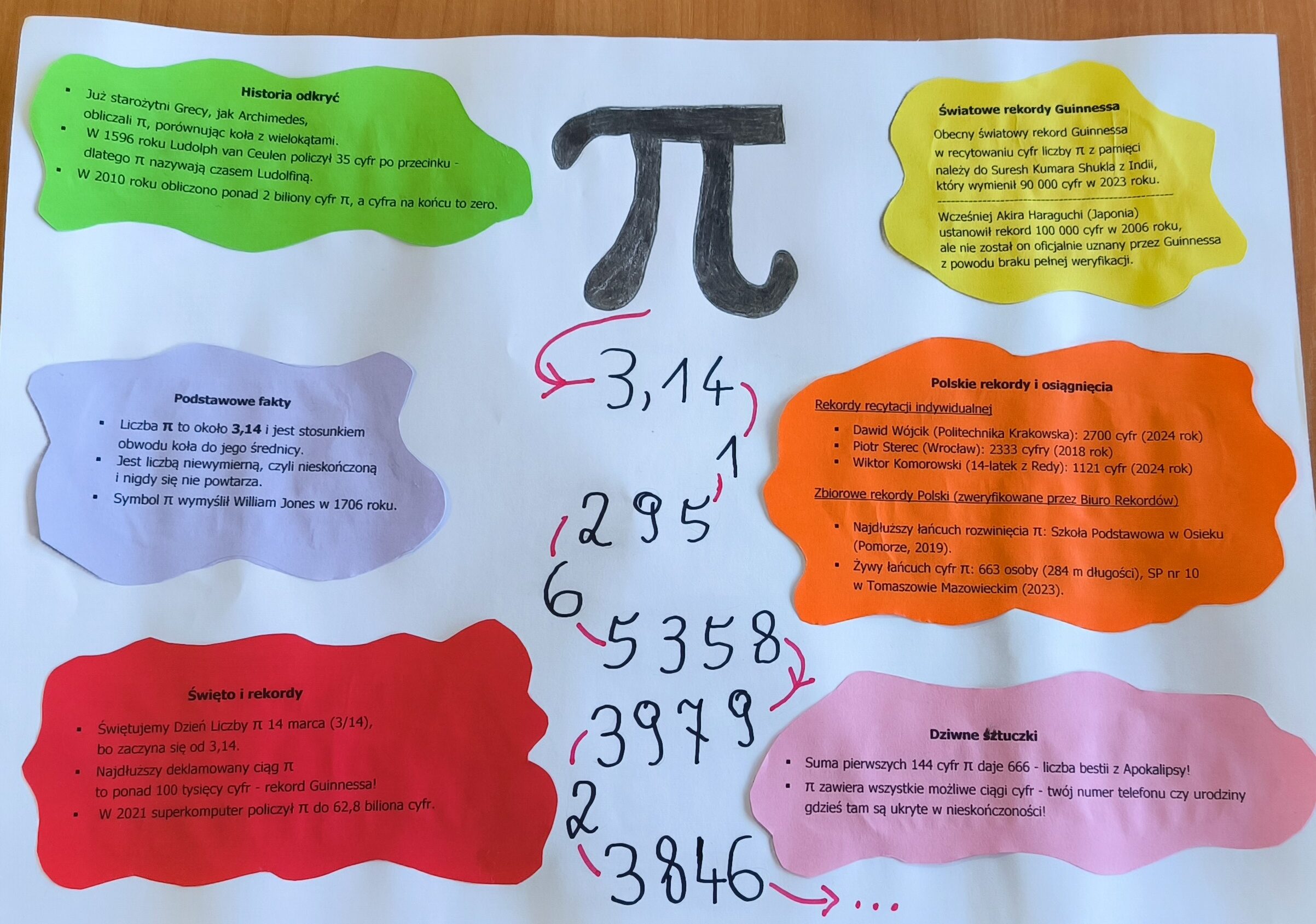 Dzień liczby Pi tradycyjnie przypada 14 marca. Dlaczego taka data? Wybrano ją z powodu skojarzenia z pierwszymi cyframi rozszerzenia dziesiętnego liczby Pi, jako że data „14 marca” zapisywana jest w USA jako „3.14”. Na zajęciach nauczyciele matematyki przybliżyli klasom tą matematyczną stałą. Ponadto chętni uczniowie klas 4-8 przygotowali plakaty zawierające ciekawostki dotyczące tej niezwykłej liczby. Zaglądając do galerii zobaczycie próbkę ich możliwości.