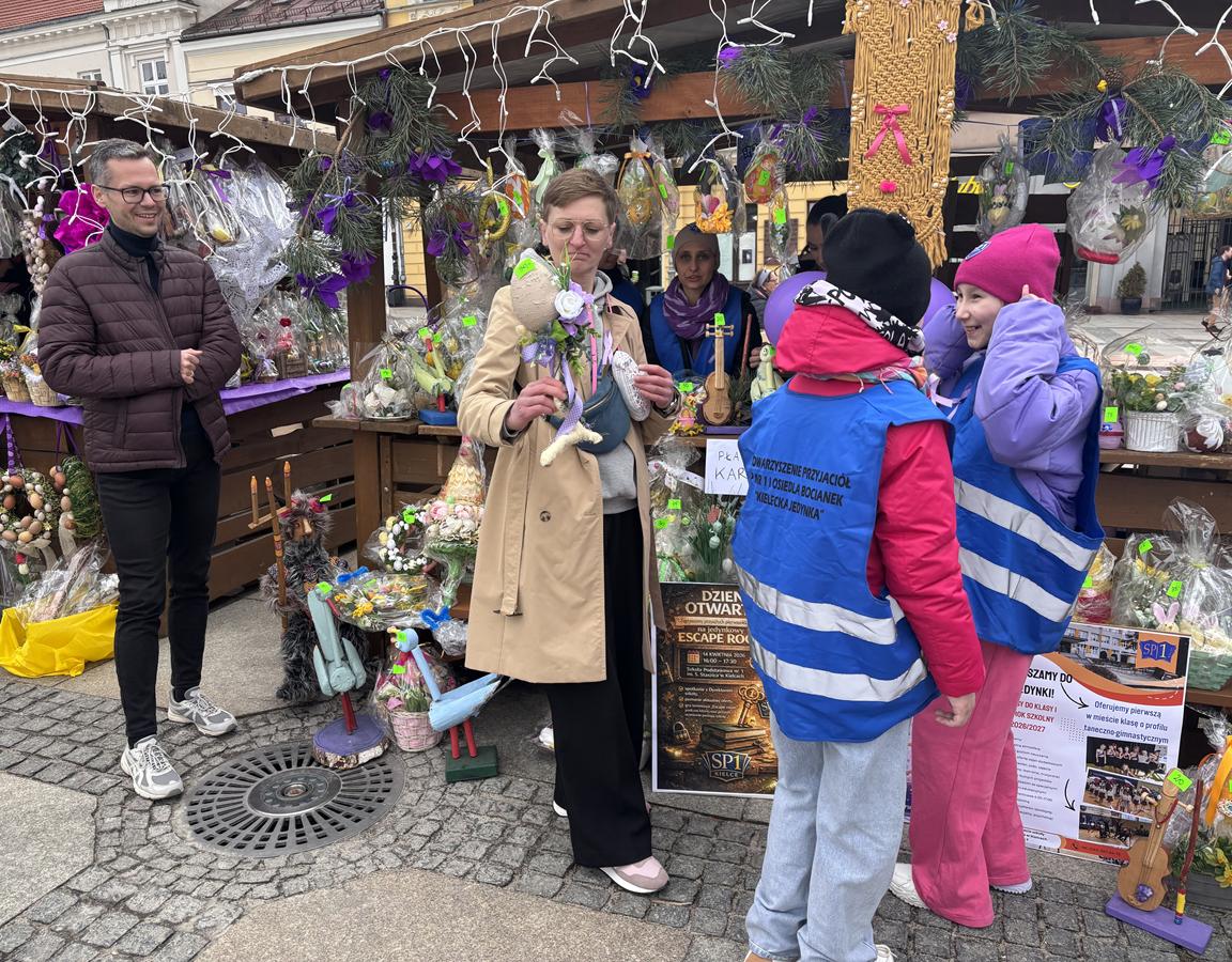 28 marca na Rynek w Kielcach odbył się Jarmark „Kolory Wiosny”, podczas którego nasza szkoła miała przyjemność zaprezentować wyjątkowe, ręcznie wykonane ozdoby przygotowane przez uczniów. Kolorowe dekoracje, pełne wiosennej energii i kreatywności, cieszyły się dużym zainteresowaniem odwiedzających wydarzenie.