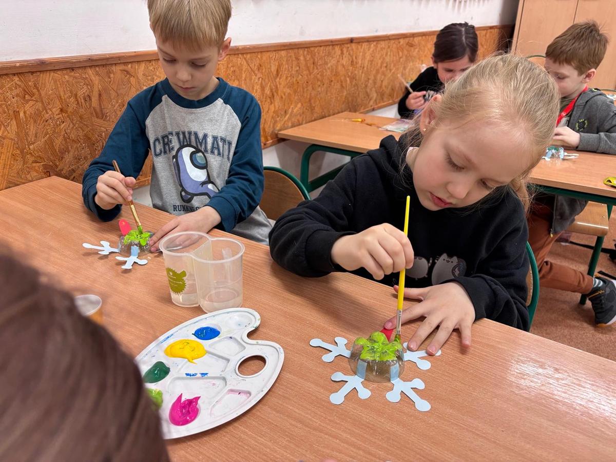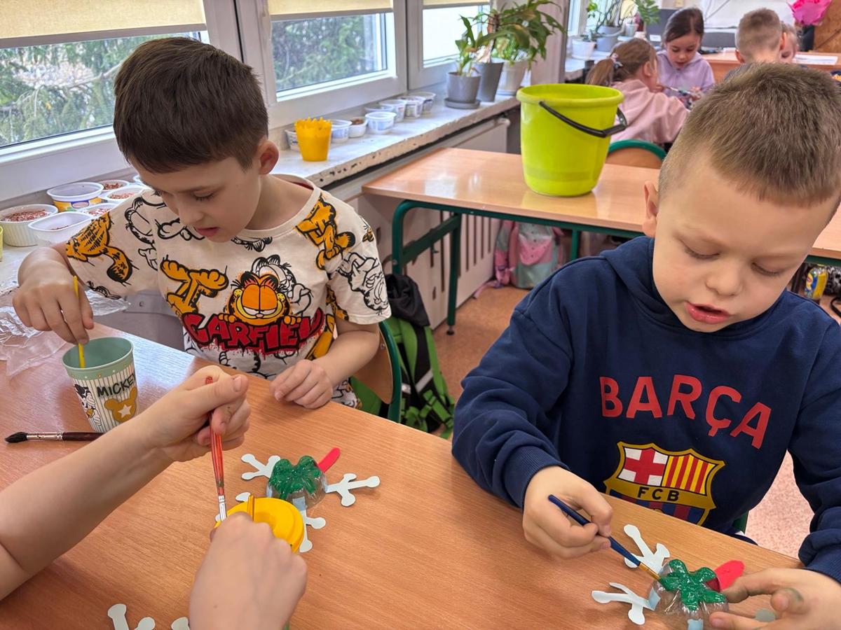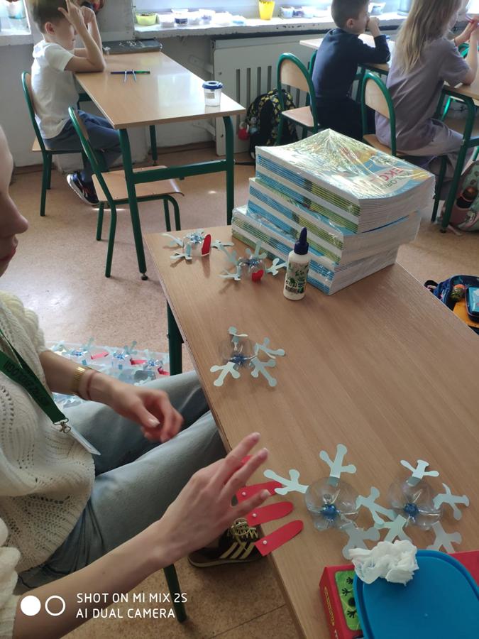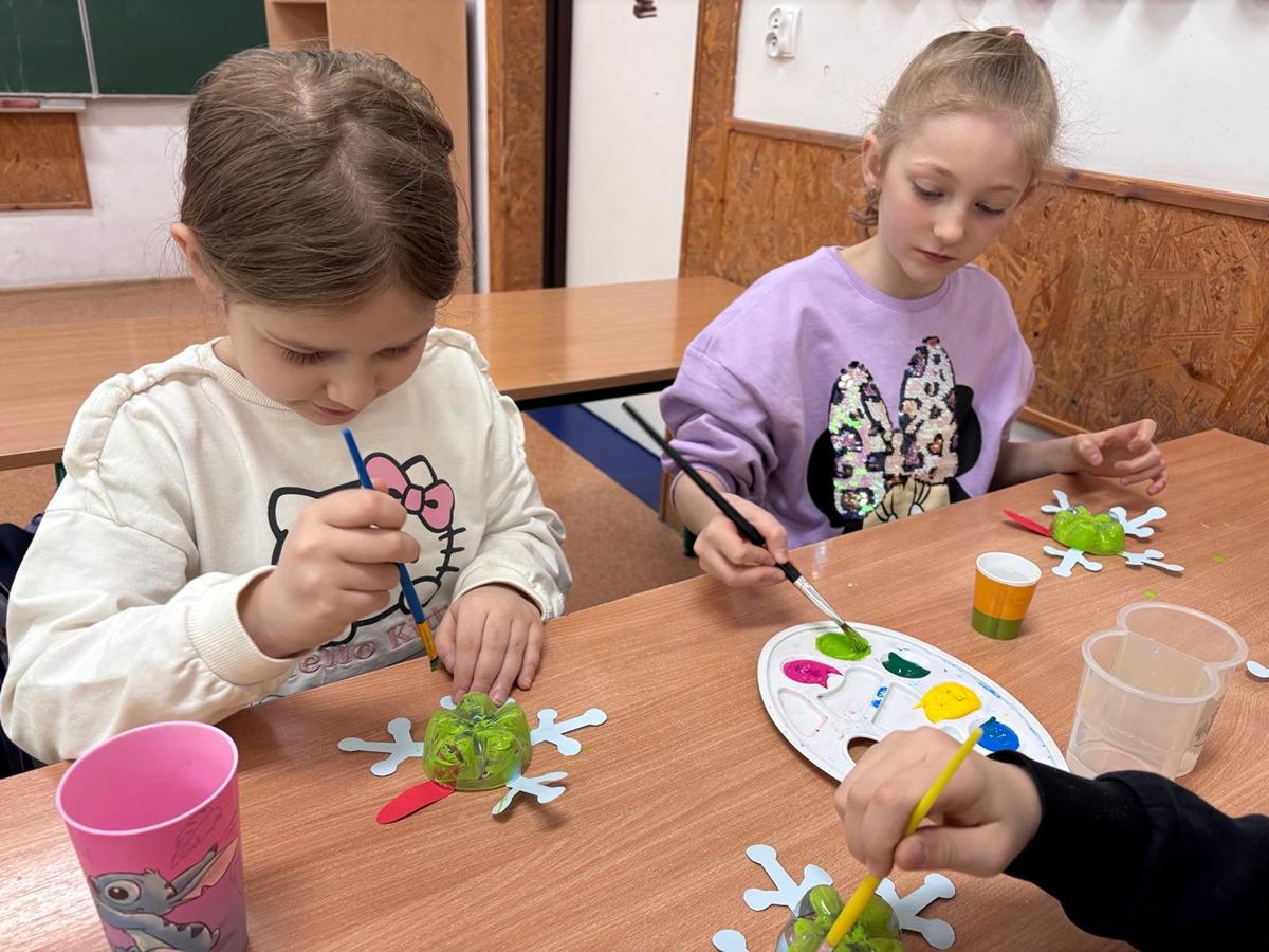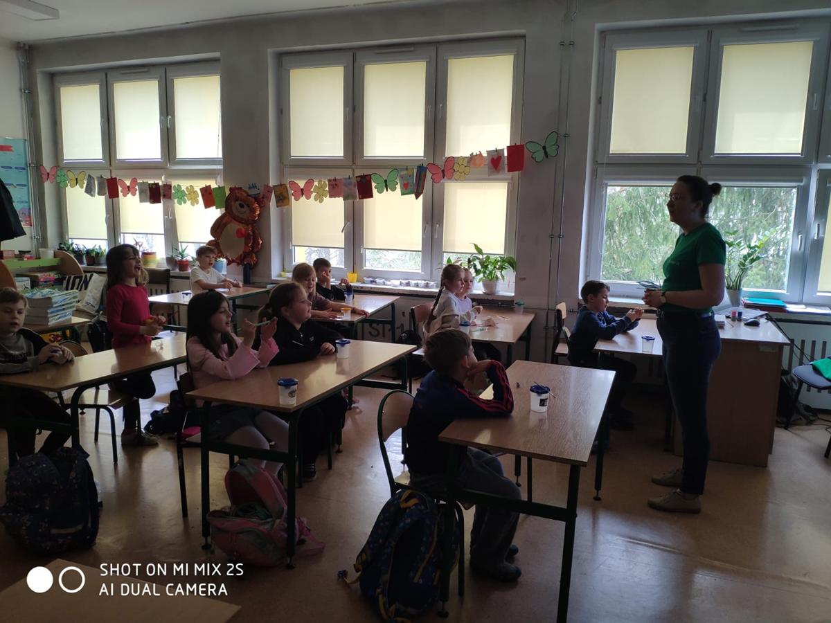Po części teoretycznej uczniowie przystąpili do zajęć praktycznych. Wykonali żabę z materiałów recyklingowych, rozwijając przy tym swoją kreatywność i zdolności manualne. Na zakończenie każde dziecko otrzymało książeczkę dotyczącą zasad segregacji śmieci.